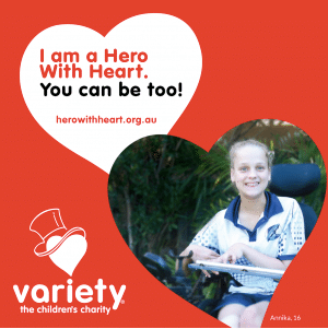 Our Variety Hero with Heart program has been developed to address this urgent need. It supports the unacceptable numbers of kids missing out on what they need.